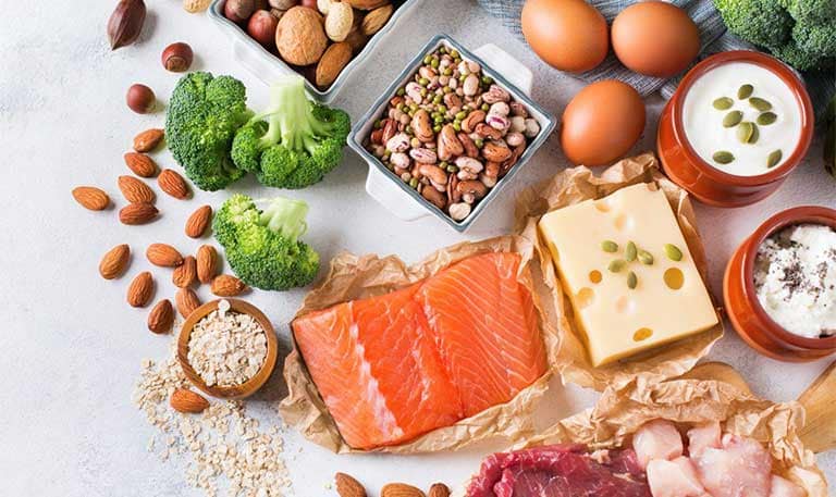 - Protein: Giúp duy trì cơ bắp và sửa chữa tế bào. Nguồn protein tốt gồm thịt nạc, cá, trứng, sữa, đậu và hạt.